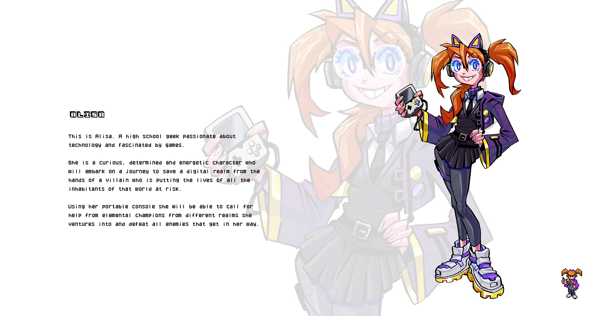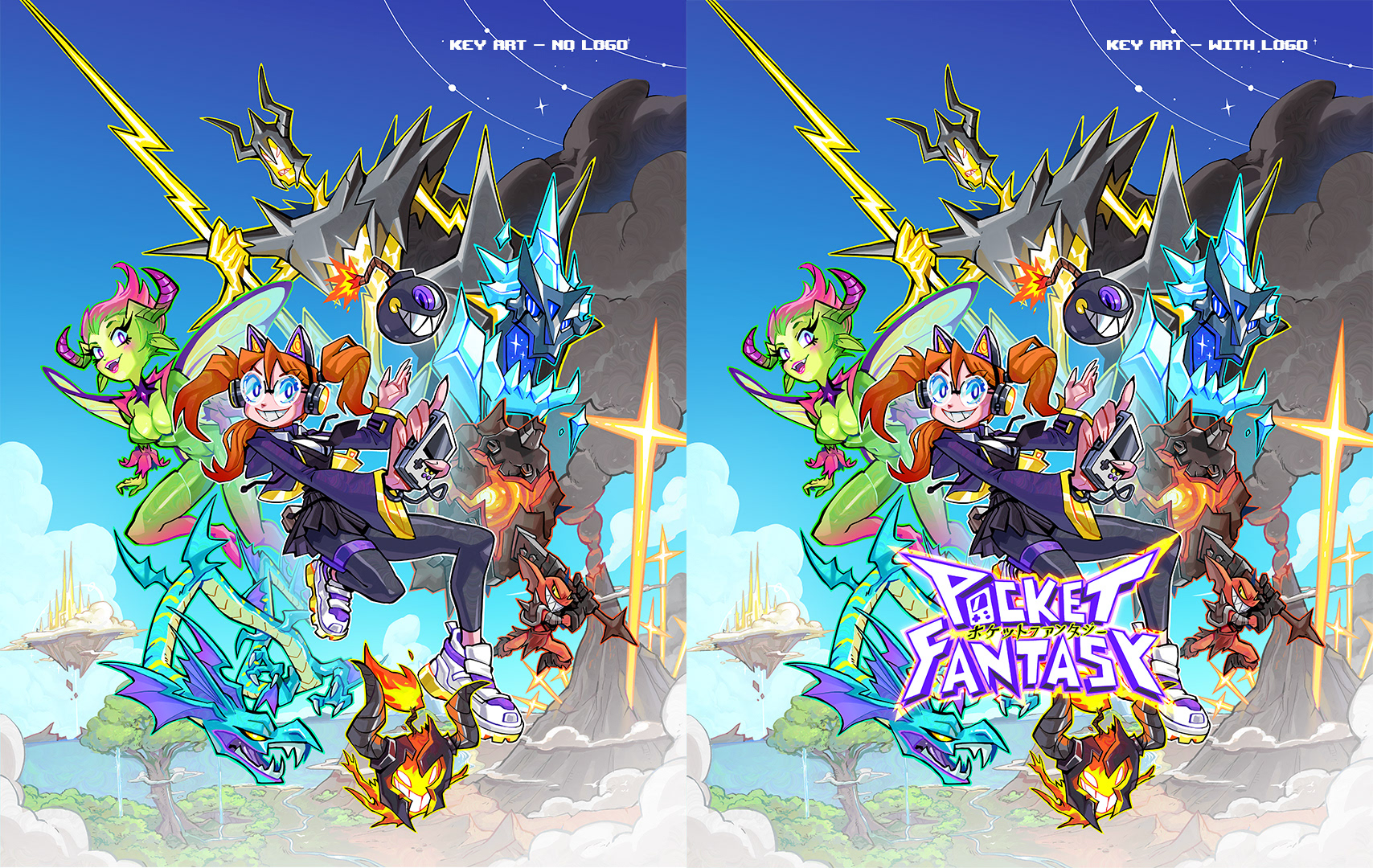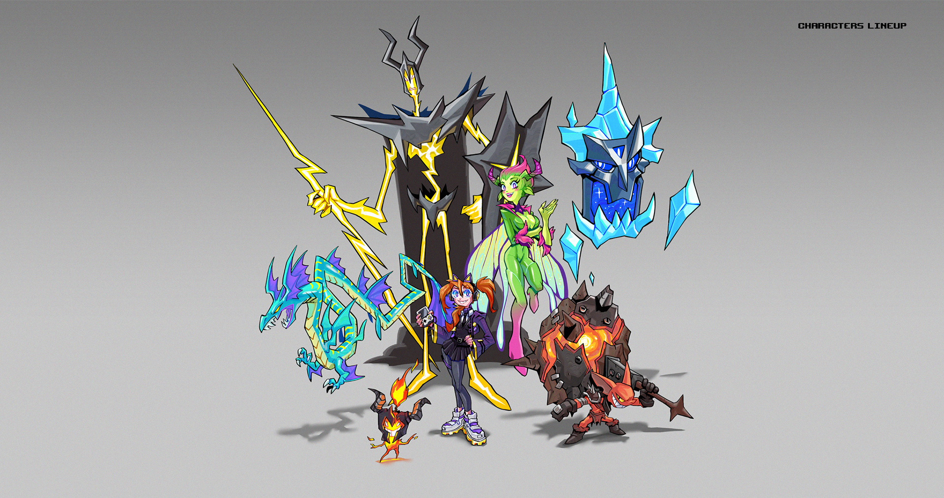 Among the pieces, it was necessary to create the conceptual arts of each key character, the creation of the key art to be used in advertising material as well as the official cover of the game and finally a mockup of the gameplay screen was created for the viewer to be able to visualize how this game would be if it were a real product.
