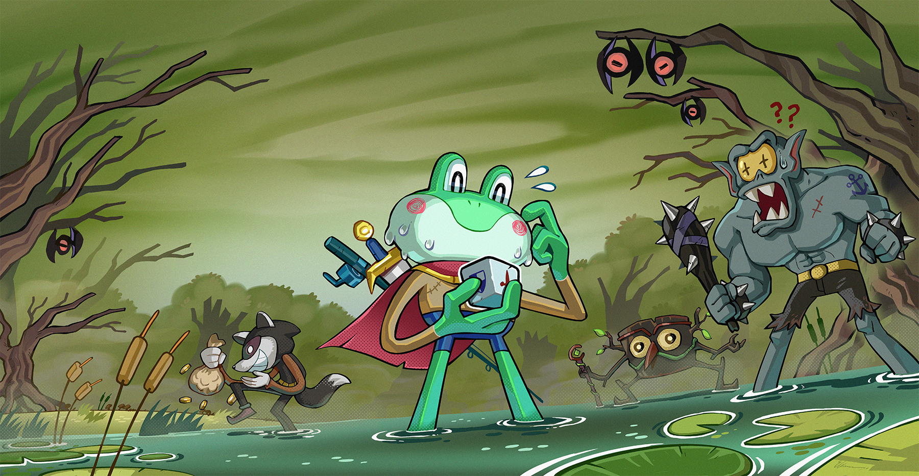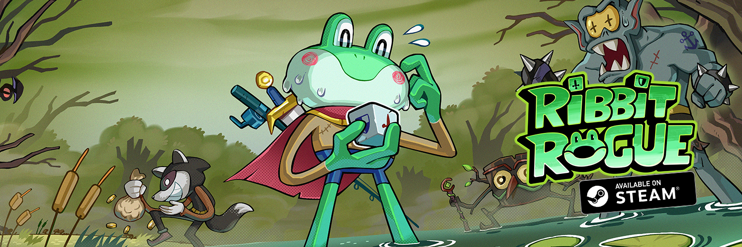 Ribbit Rogue - Official game Key art (Steam capsule) and logo design.